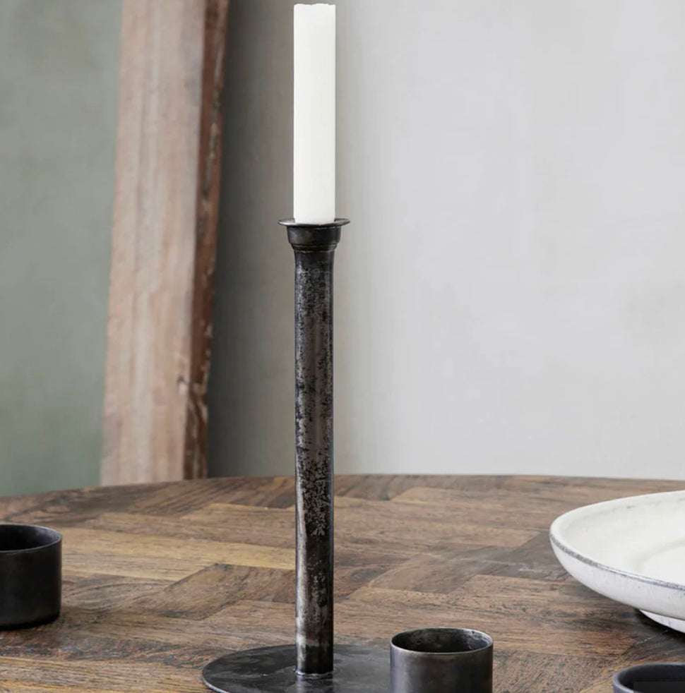Minimal candle holder with an antique copper finish. The tall candle holder is ideal with other candle holders in a variety of colours and designs if you want to create a personal display on a shelf or side table. Candle stands take part in creating a cosy and personal atmosphere and this design is no exception. Note: The finish of this product may vary.