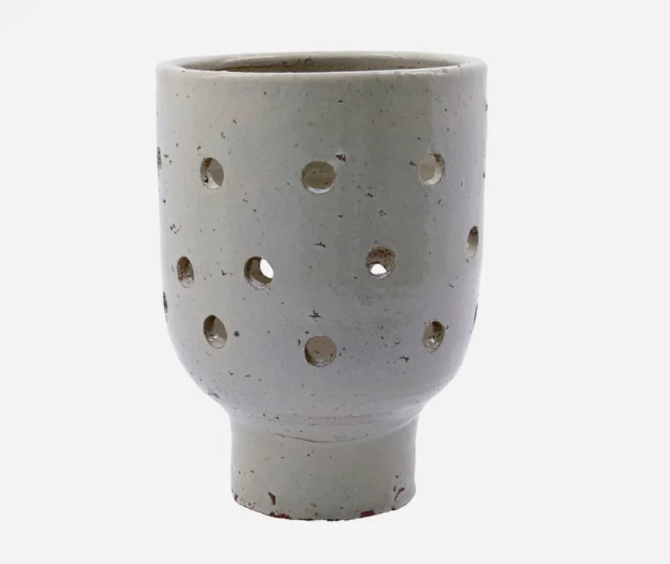 Add charm and a rustic feel to your décor. The tealight holder is designed to create the right atmosphere in the evenings. The overall design is simplistic and down to earth with a rustic and deliberately imperfect glaze. To let the light shine through, the stoneware comes with holes that are not perfectly round. This all adds character and charm to the small tealight holder. Place in the windowsill or on an open shelf with candle holders and décor in similar shades or mix materials for a unique display.