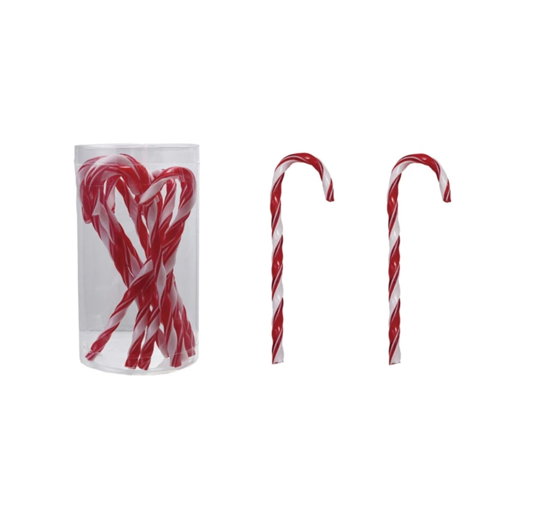 Enhance your holiday beverages with this set of 10 plastic candy cane-shaped drink stirrers. Designed for easy stirring and festive presentation, these durable stirrers add a charming seasonal touch to cocktails, hot drinks, and punch bowls.