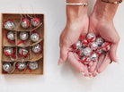 Add glimmer to the seasonal decor with this set of 12 Mini Mirror Ball Ornaments, expertly designed to combine aesthetic appeal with practical functionality. Each ornament features a refined silver finish, complemented by vibrant red accents and intricate bows, making them ideal for sophisticated embellishments on Christmas trees, garlands, or wreaths. These decorative pieces are engineered from lightweight Styrofoam and premium glass, striking an optimal balance between durability and elegance.