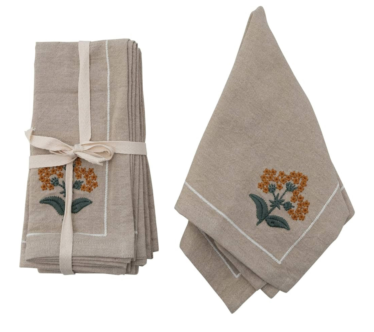 - This timeless set of cotton napkins showcases intricately embroidered florals and French knots