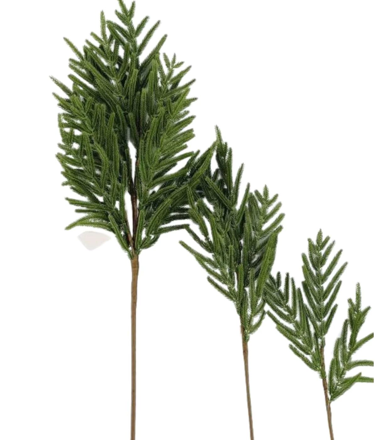 Our Real Touch faux Norfolk Pine stems offer an incredibly realistic look and feel. These life-like holiday greens provide the look of real greenery that will stay beautiful for years. Use multiple stems to adorn your mantle or create a festive entrance with a vase full of this premium faux greenery.