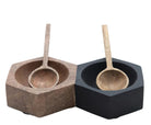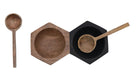 Mango Wood Hexagon Shaped Dish w/ 2 Sections & 2 Spoons, Black & Natural