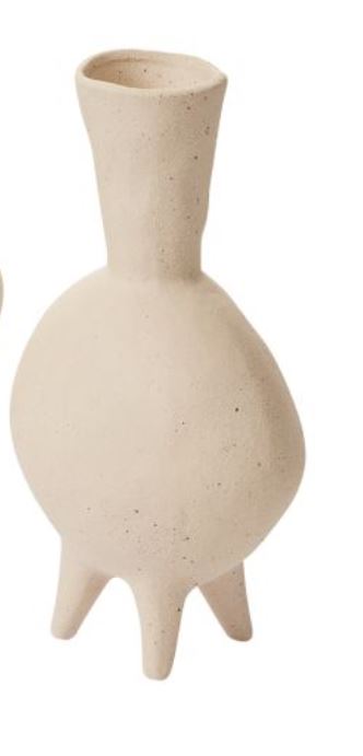 Whether displaying as a decorative shelf piece or filling with bright blooms on a table, the old world look of the small Silo Vase is an eye-catching conversation starter with its organic flask shape, sandy textural finish & playful, tapered feet.