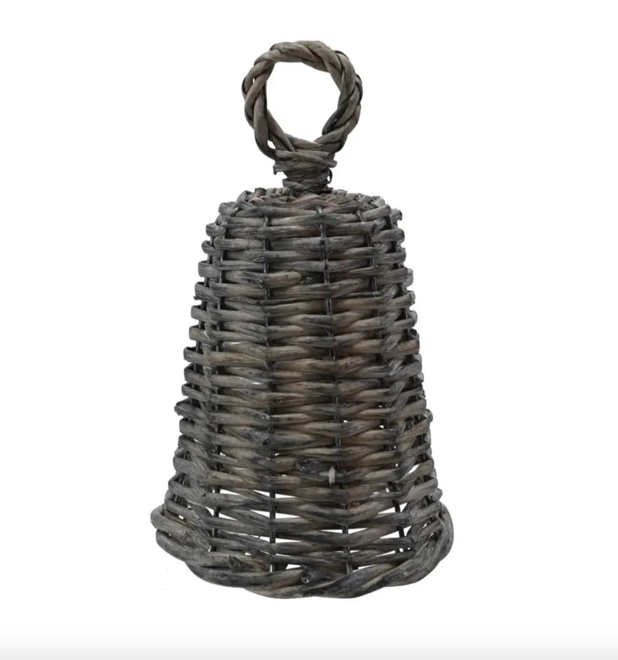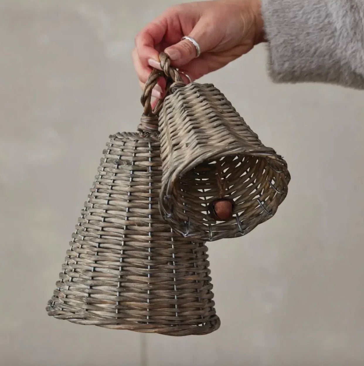 This woven reed and metal bell adds rustic charm with its natural texture and soft jingle, perfect for cozy holiday accents or cottage style displays. Use together or alone to add a simple, festive touch anywhere in your home.